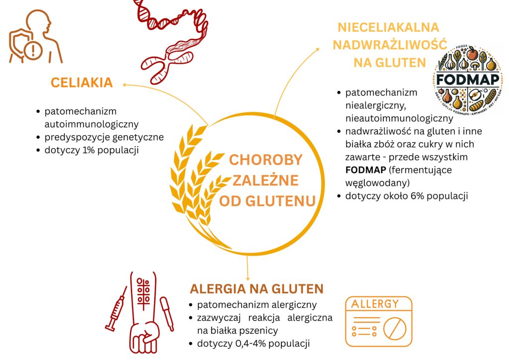 Aby łatwiej było Ci zapamiętać najważniejsze cechy i różnice między chorobami zależnymi od glutenu przygotowaliśmy dla Ciebie grafikę.